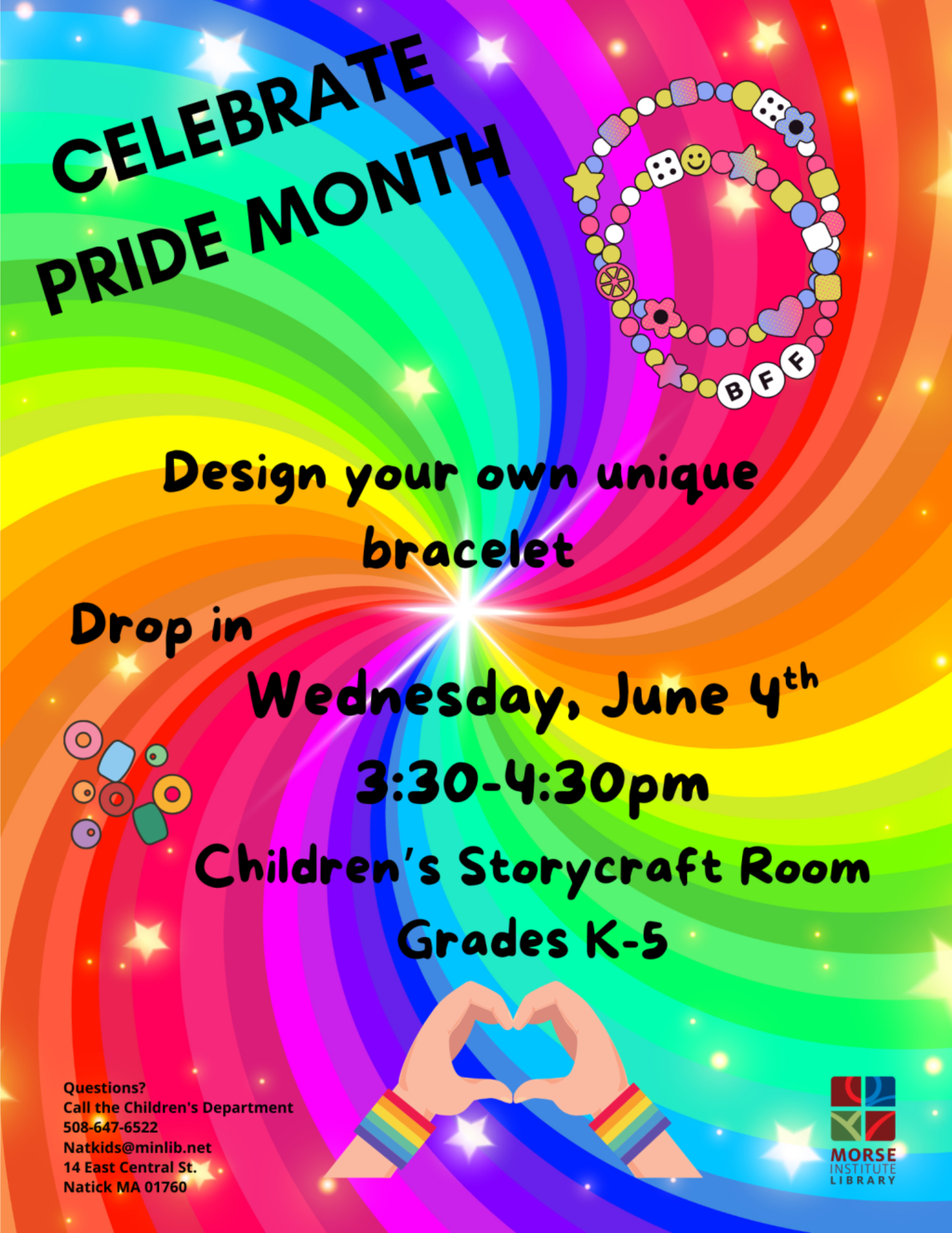 Celebrate Pride Month. We will be making bracelets in the Children's Storycraft Room on the Lower Level. Recommended for Children in Grades K-5.